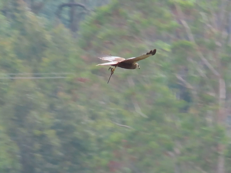 Ao longo da tempada de cría obsérvanse numerosas evidencias: adultos aportando material de construción do niño (primeira vez o 27/04/2025), parella interactuando, macho ofrecendo presa á femia e adultos carrexando presas para os polos. O 2/08/2025 entra no territorio un exemplar de Circus pygargus, que é rápidamente expulsado pola femia de Circus aeruginosus. Finalmente obsérvanse dous xuvenís voantóns o 3/08/2025, aínda que se considera probable que saísen do niño días antes pola soltura con que voan. A última vez que se avistan adultos ou xuvenís é o 17/08/2025, mas non se visita a zona nas dúas seguintes semanas.